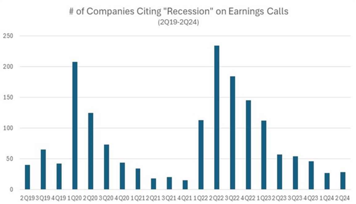 The last month has seen some limited market volatility, heavily anticipated employment numbers, and a very strong indication from the Chair of the Federal Reserve that interest rates will begin a cutting cycle starting in September.1 Amidst all the noise, we believe there is still considerable reason to be confident in the state of the economy.  First, GDP projections remain positive.  Real GDP grew at an annual rate of 3.0% in the second quarter of 2024.Projections for Q3 and Q4 currently sit between 1.5-1.9%.3 As interest rates decline, there is reason to believe that GDP growth beyond 2024 will remain positive as well.  Second, jobless claims have increased but remain below last year’s levels,4 and though August’s employment numbers fell below expectations, they showed an increase in nonfarm jobs from July.  Overall, unemployment decreased to 4.2%.5  Finally, major indices performed well on Q2 earnings.  The S&P 500 reported earnings growth of 11.3%, the highest year over year growth since Q4 2021.6  The Russell 2000 Index closed out the earnings season with 66% of companies meeting or exceeding expectations on earnings per share and the index blended growth rate stood at 20.5%.7 A close look at the earnings calls of S&P 500 companies over the past two months shows that approximately the same number cited “recession” as did in Q1, lower than any other quarter since 2021.8 We value this as a sign that the overwhelming majority of major companies do not see indicators in their day-to-day business functions that would cause serious alarm.